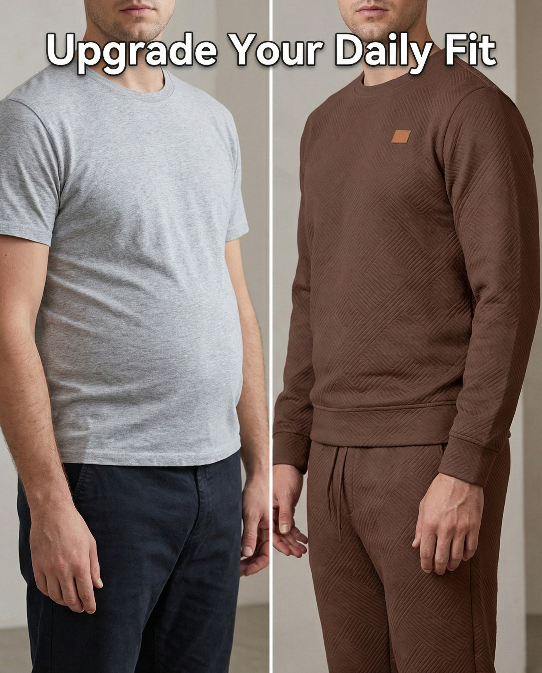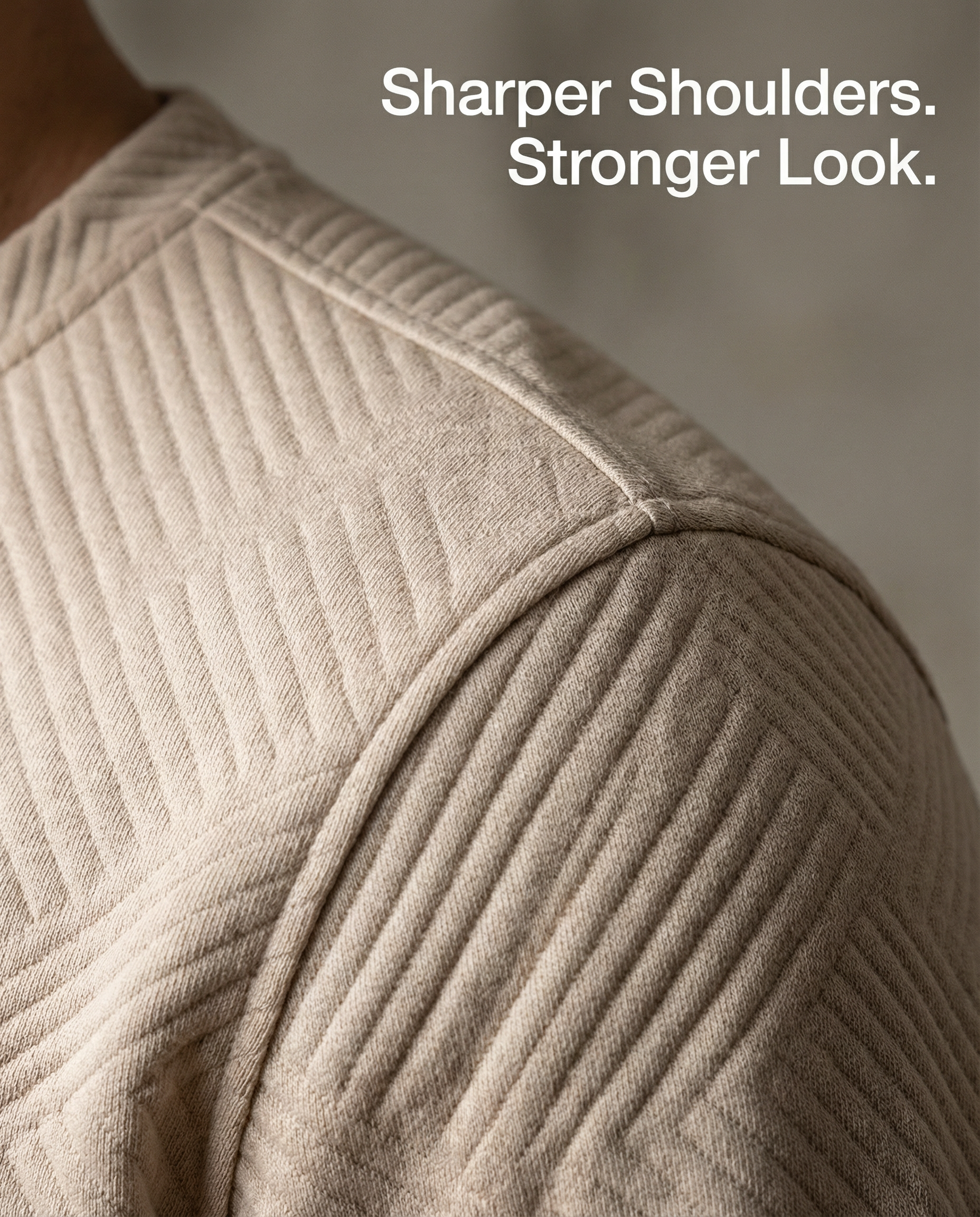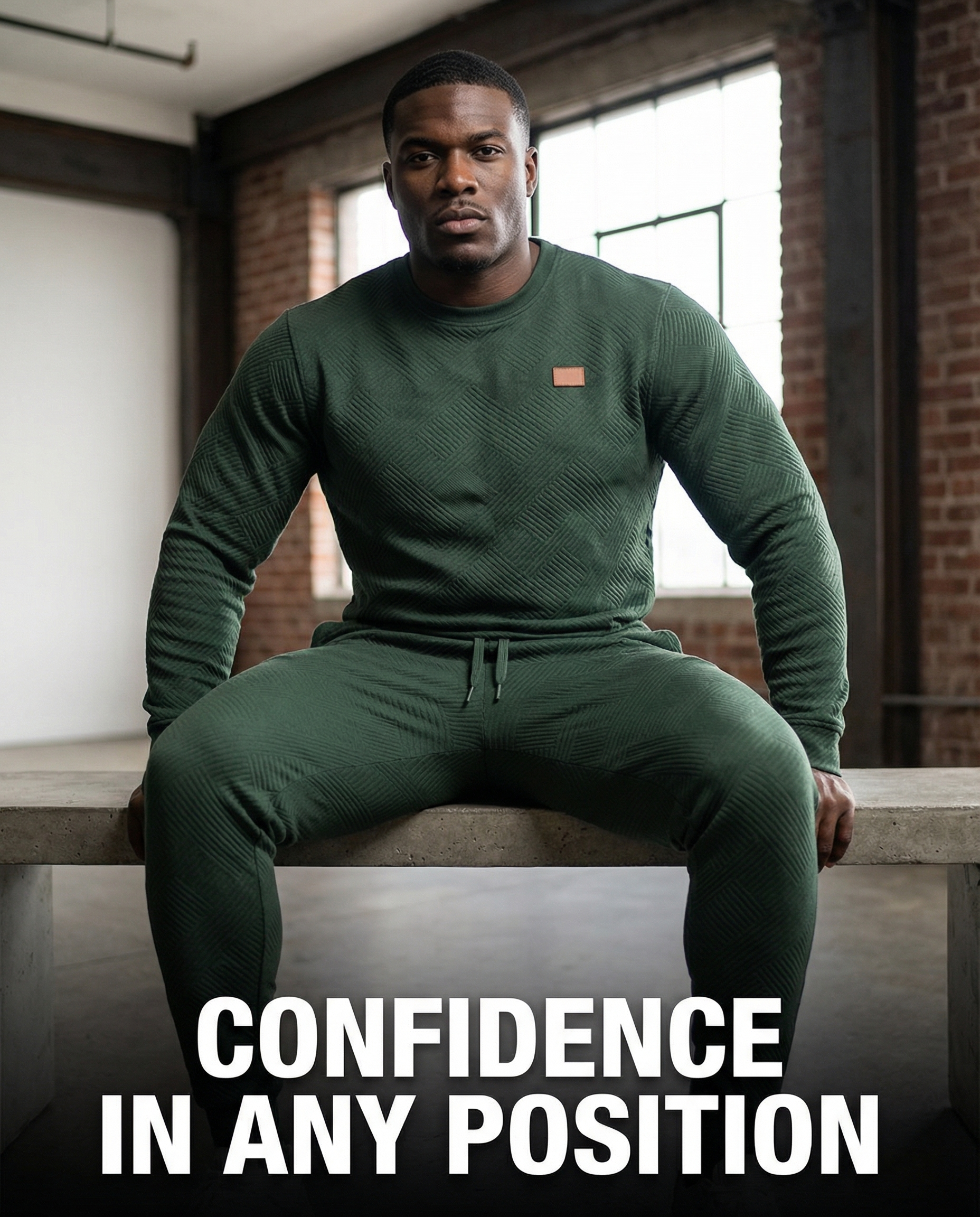 Most sweats sag, cling around the midsection, or lose their shape within weeks. The Essential Textured Set was engineered to solve that problem — a double-knit fabric that drapes cleanly, smooths the frame, and holds structure throughout the day.