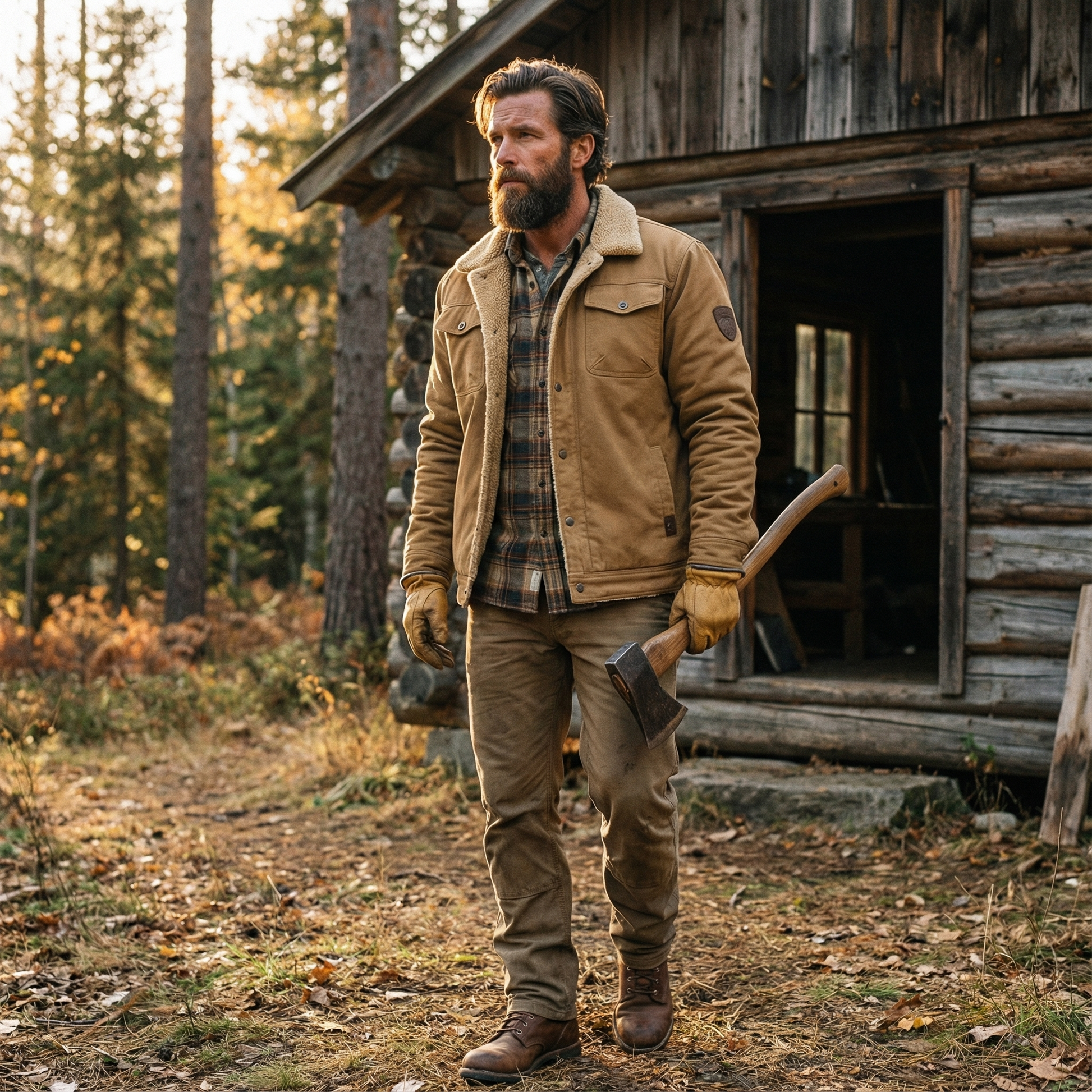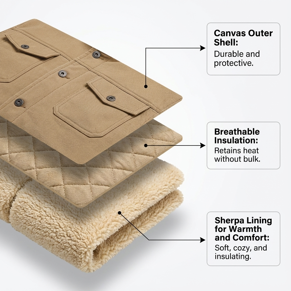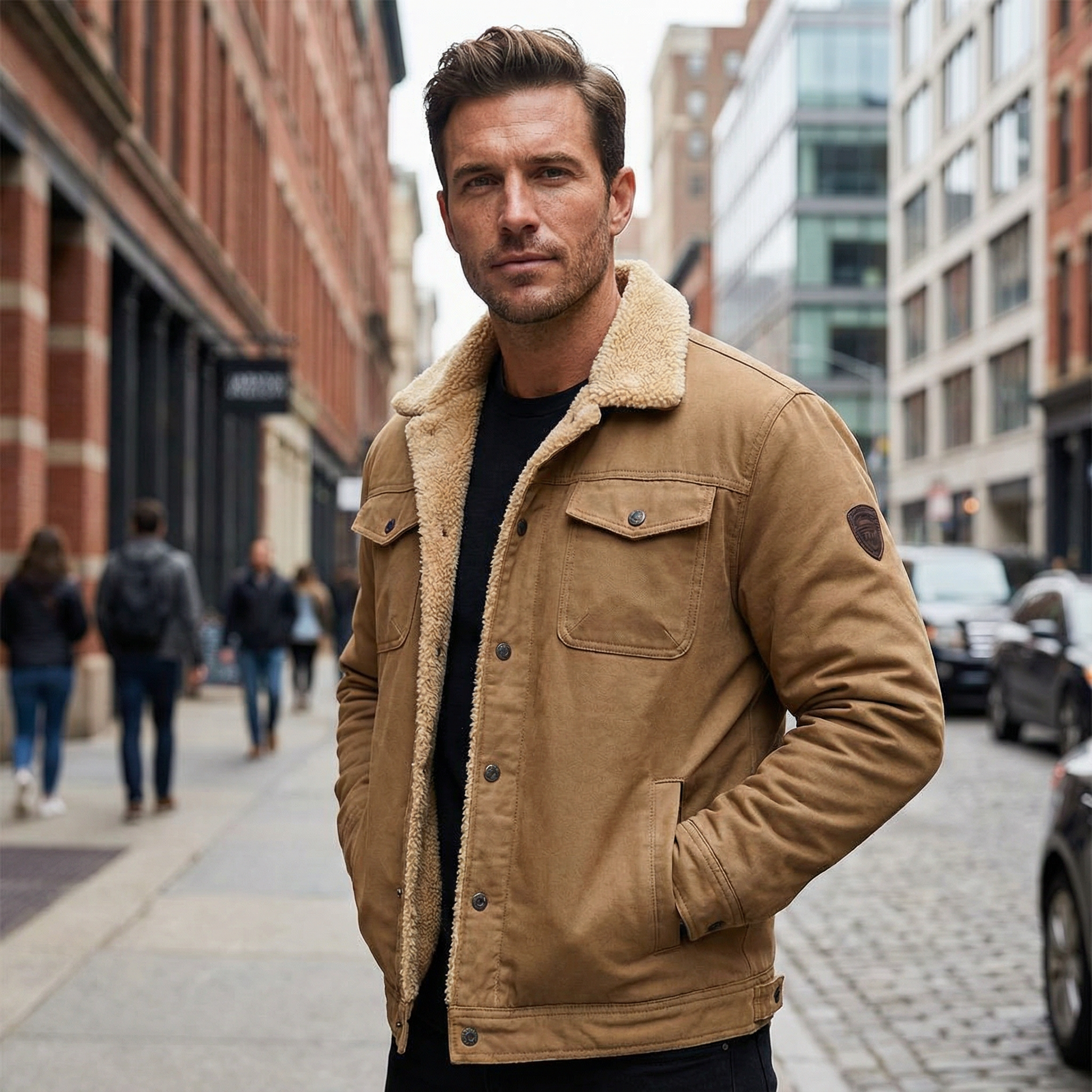 A sherpa-lined canvas jacket that blends warmth, rugged durability, and timeless workwear style.